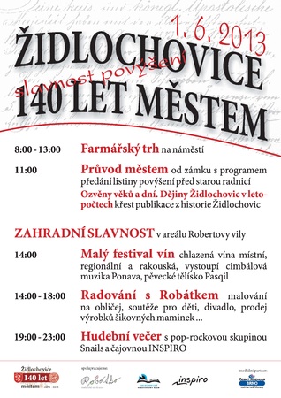 Letošní rok patří v Židlochovicích akcím, které jsou spojené s oslavami 140 let od povýšení Židlochovic na město. Oslavy vyvrcholí v sobotu 1. června, naplánován je celodenní program.